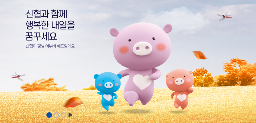 신협 인터넷뱅킹 서비스를 이용하게 되면 요즘 마스코트를 빼놓을 수가 없죠. TV에서 광고를 보면 돼지 형제들이 서로 어부바를 해주면서 밤길을 걷는 모습들이 나오는데 참으로 귀엽다는 생각이 들더라구요.